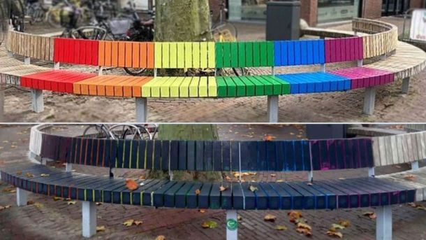 Taakstraf voor zwart spuiten regenboogbankje
