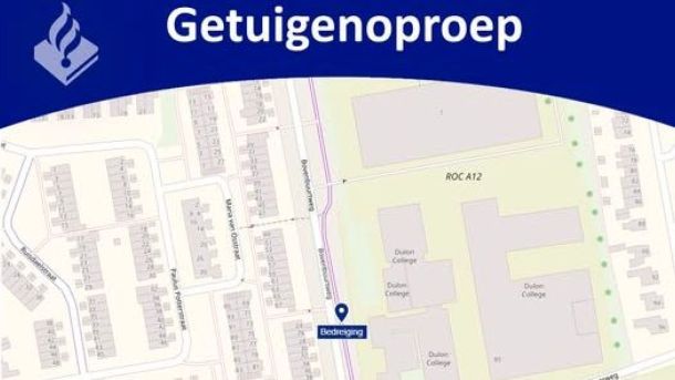De politie Ede is op zoek naar getuigen van een bedreiging aan de Bovenbuurtweg in Ede. De bedreiging vond plaats op 14 november rond 18:10 uur.