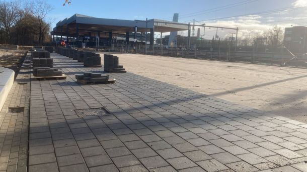 Nieuwe bestrating Noordplein voor onbewaakte fietsenstalling Ede-Wageningen