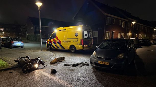 Op de kruising van de Leeuwenhorst met de Boekhorst is een scooterrijder aangereden door een automobilist. De scooterrijder belande op de voorruit van de auto en raakte gewond.