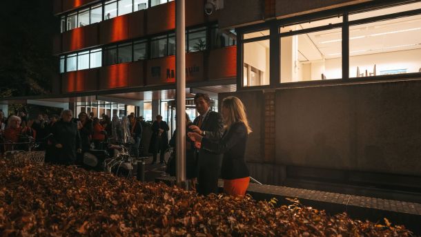 Oranje vlag voor actie tegen geweld tegen vrouwen gehesen door burgemeester Verhulst en Soroptimisten