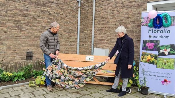 Tuinvereniging Floralia schonk woensdag een tuinbankje aan de inwoners van Bennekom vanwege het 100-jarig bestaan. De bank staat bij het kerkplein aan de Heelsumseweg.