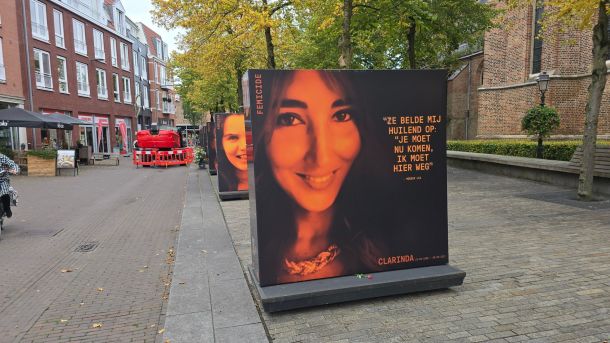 Op het Oude Kerkplein in hartje centrum van Ede staan sinds kort meerdere billboards. Ze zijn onderdeel van de reizende expositie FEMICIDE, over vrouwenmoord. Zo ook de beeltenis van de 22-jarige Shelley uit Ede.