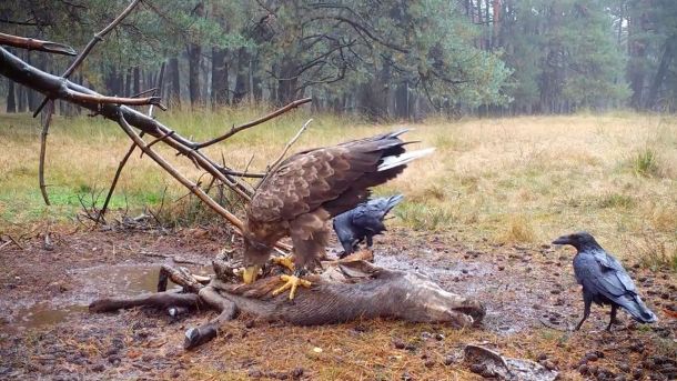 Zien: zeearend eet van dood hert voor wildcamera