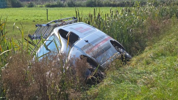 Op de Vier-Morgenweg in Bennekom is een bedrijfsbus in een sloot beland. De bestuurder veroorzaakte op de Dr W. Dreeslaan een aanrijding, maar ging er vandoor.