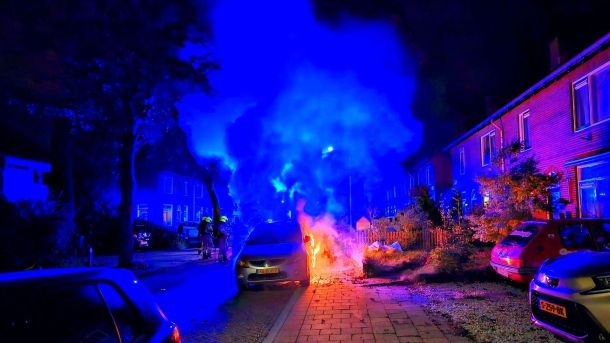 Brandweer blust autobrand in Bennekom