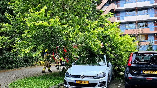 Grote tak valt uit boom op auto in Ede