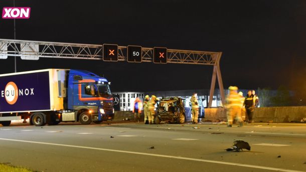 Nachtelijke aanrijding tussen vrachtwagen en personenauto, snelweg afgesloten in De Klomp