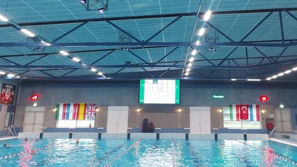 De vlaggen hangen: waterpolo Euro Cup Women in De Peppel Ede