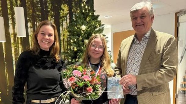 Burgemeester Marieke Teunissen en wethouder Henk Vlastuin van sport zetten maandag turntalent Kaily Meerwijk in het zonnetje. De 13-jarige werd drie jaar op rij (2025, 2024 en 2023) Nederlands Kampioen op het turnonderdeel sprong.