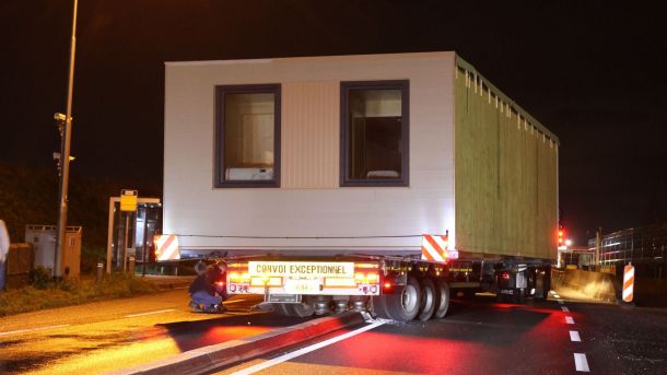 Op de Rondweg-Oost in Veenendaal kwam maandagavond 27 rond 21.00 uur een vrachtwagen met uitzonderlijk vervoer vast te zitten.