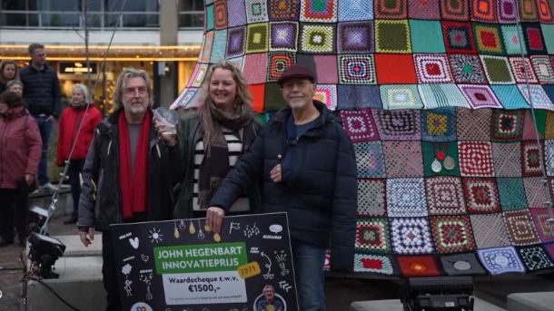Enorme gehaakte kerstboom onthuld in Veenendaal