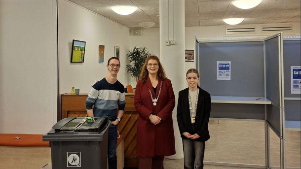 Naast de schoolbezoeken zijn burgemeester Jansen en kinderburgemeester Eden ook samen op de fiets gestapt om alle zes stembureaus in Woudenberg te bezoeken. De gemeente houdt daarmee een traditie in ere.