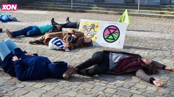 Extinction Rebellion houdt actie tijdens luchtalarm in Woudenberg