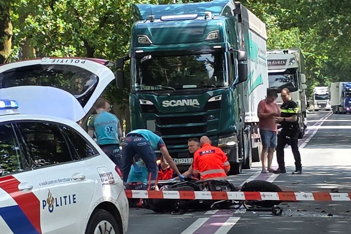 Lange file door ongeval met motor en auto’s op A12 bij de Klomp