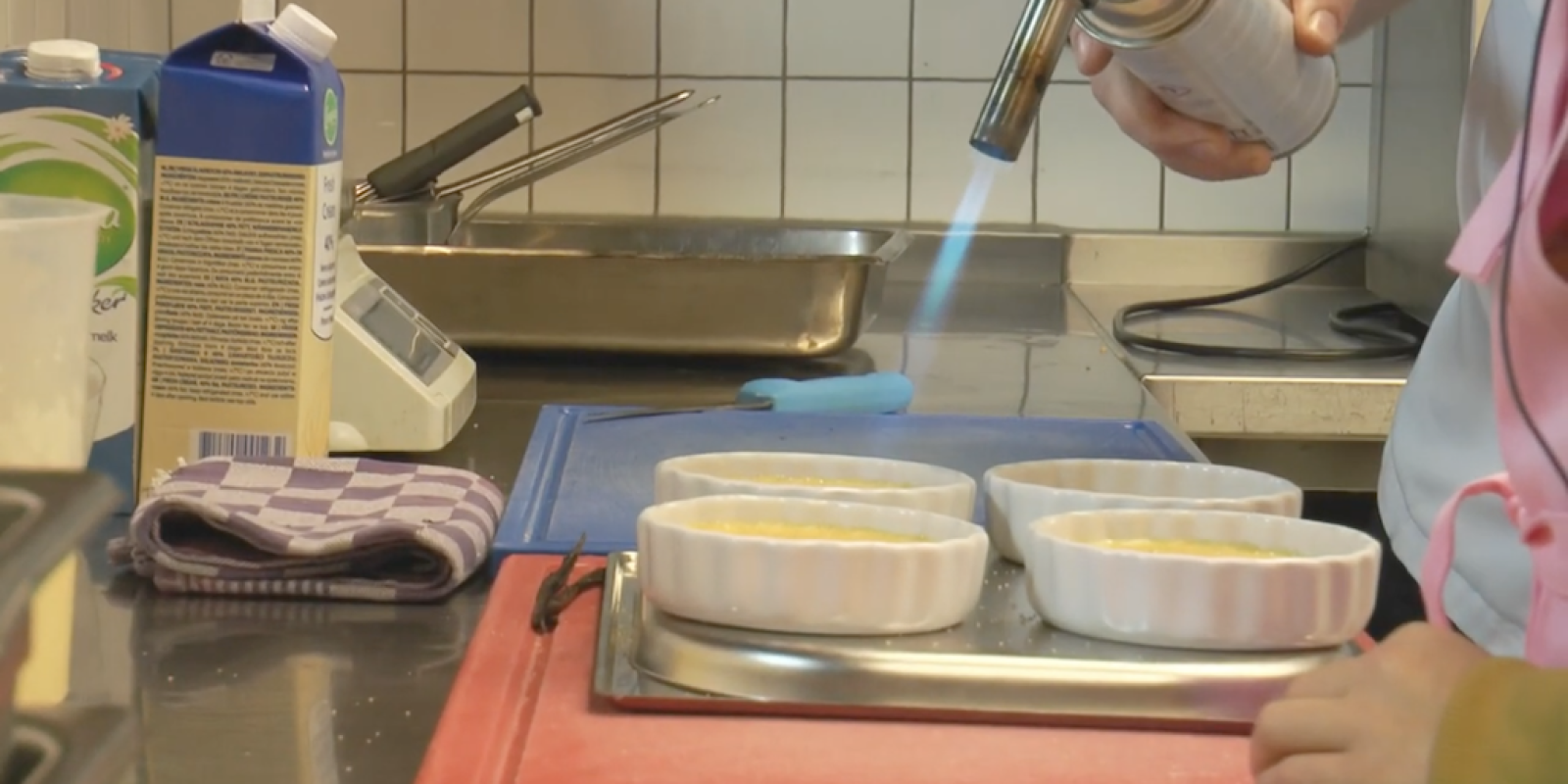 Melk, room en vanille opkoken en laten trekken.