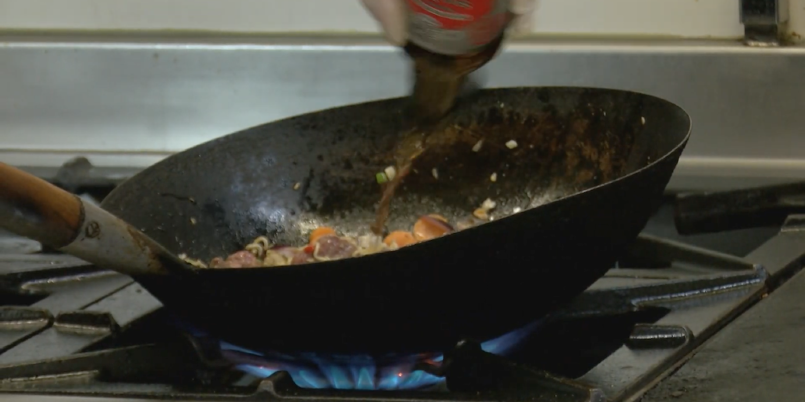 Wok op het vuur met een scheut olie.